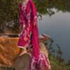 Lavender Fall in Sorbet Pink is a soft and graceful 3 piece unstitched suit designed to bring charm and texture into one refined look. The neckline is delicately embroidered on organza and paired with a printed cutwork embroidered front and side panels, creating a beautifully layered effect. Four embroidered tareez pattis and color blocked scalloped borders for the front hem elevate the overall silhouette.